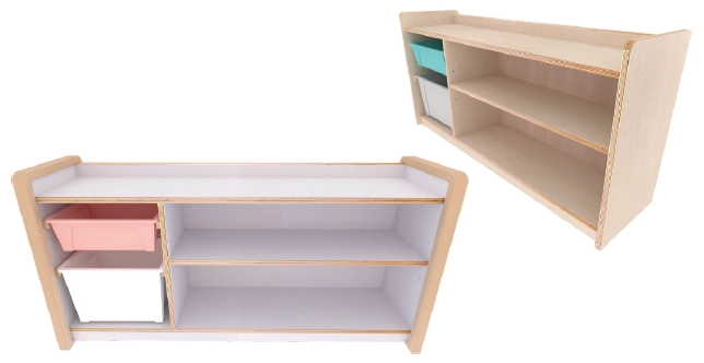 樺木+白色美耐板雙層嬰幼教具櫃(無後板)