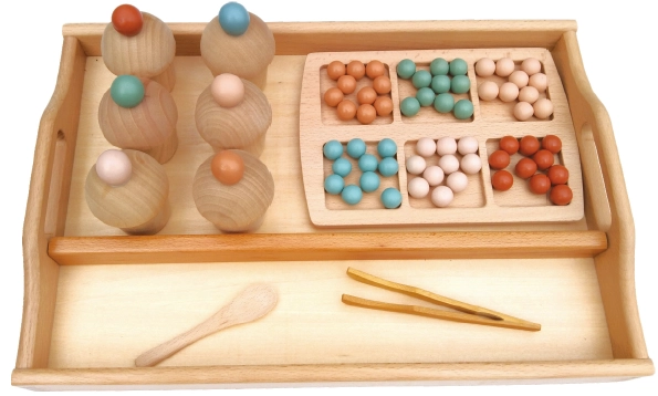 將木珠夾入或舀入,相對應的木瓶子內